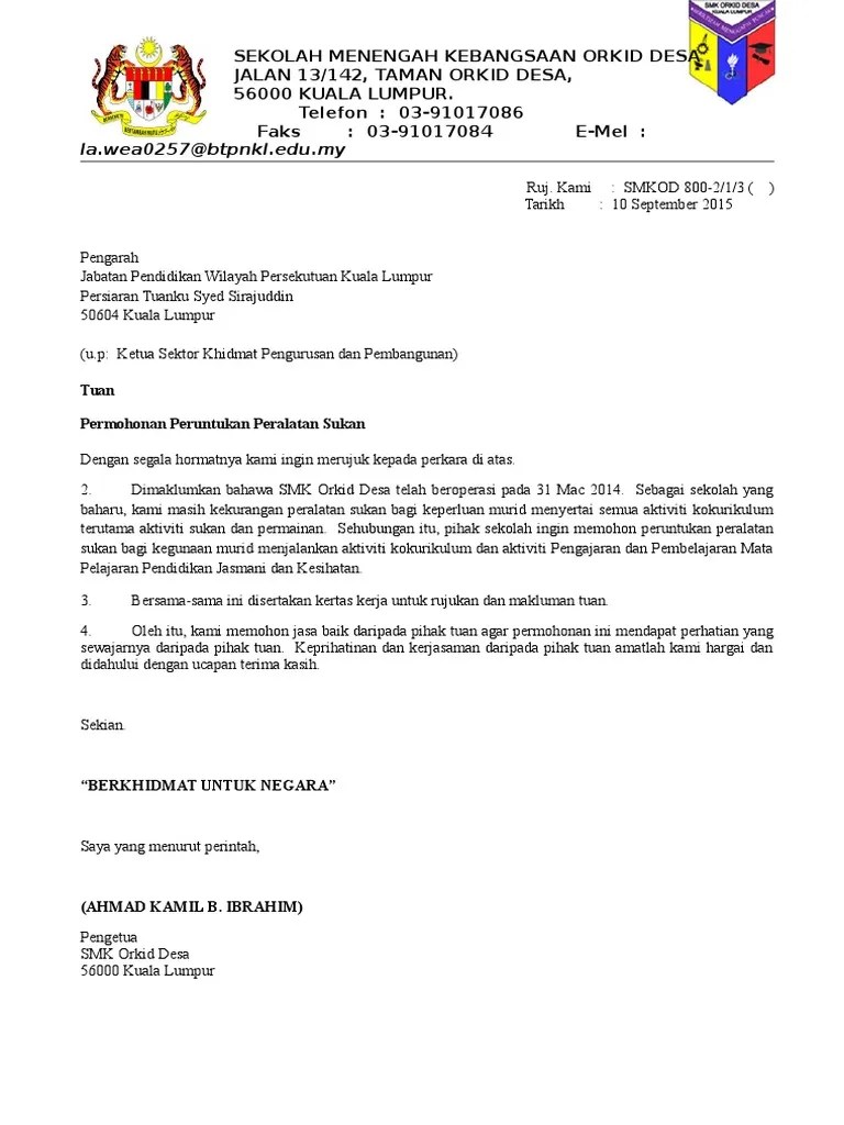Surat memohon kebenaran meminjam peralatan sekolah. Contoh surat rasmi permohonan bantuan peralatan rasmi sua.