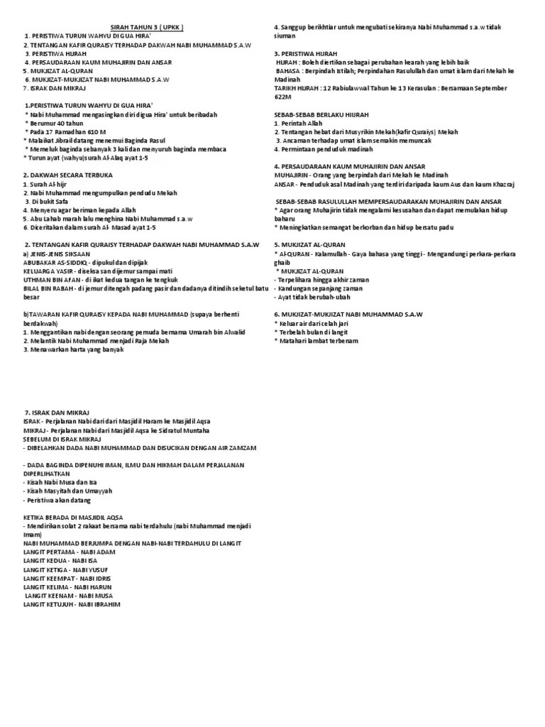 Nota Ringkas Sirah Tahun 1 : Sirah Tahun 4 Pdf